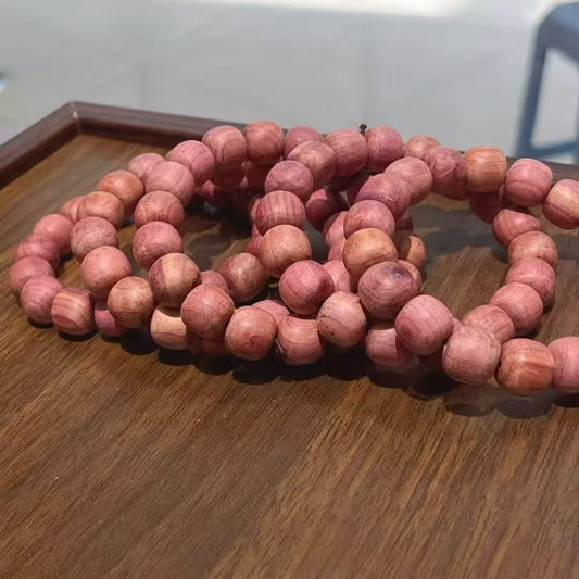 11x12mm Blood Cypress Wood Classic Barrel Bead Bracelet | Solid Wood Single-Strand Bracelet | Rustic Log-Style Wenwan Jewelry