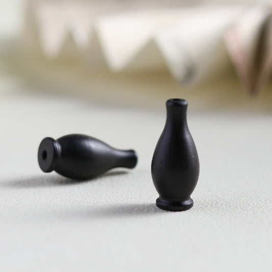 Natural Black Ebony Wood Carved Vase Bead, Through-Hole Pendant Charm, Handmade Wooden Amulet for Necklace Bracelet Jewelry Making