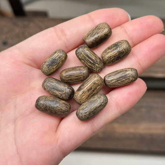 10PCS 9*19mm Vietnam Nha Trang Agarwood Beads, Green Kyara Aloeswood Barrel Loose Beads, DIY Jewelry Making Supplies for Bracelets & Necklaces