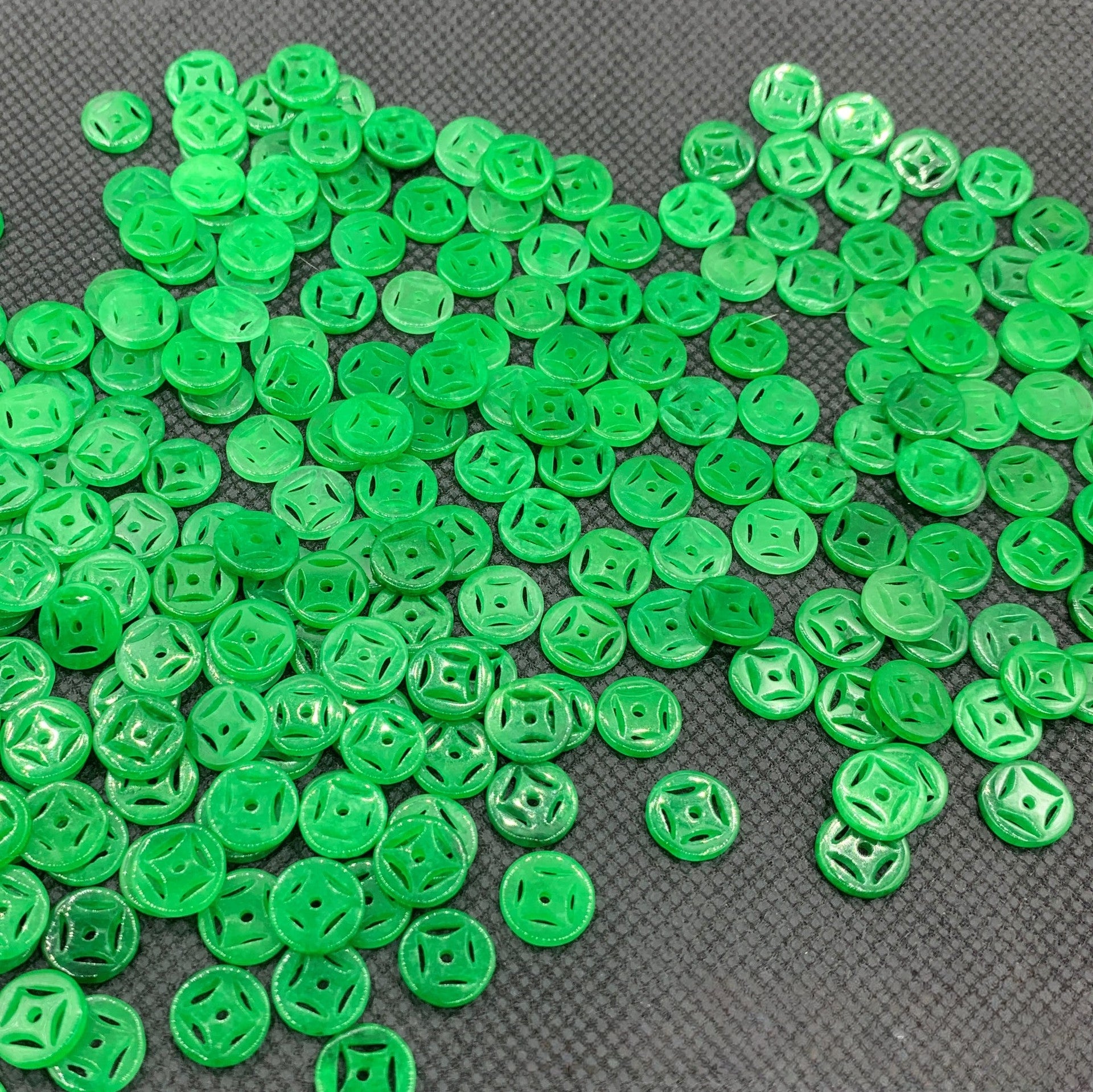 10pcs 10mm Green Jade Coin-shaped Loose Beads, Carved Gemstone Beads for DIY Jewelry Making, Chinese Style Craft Supplies