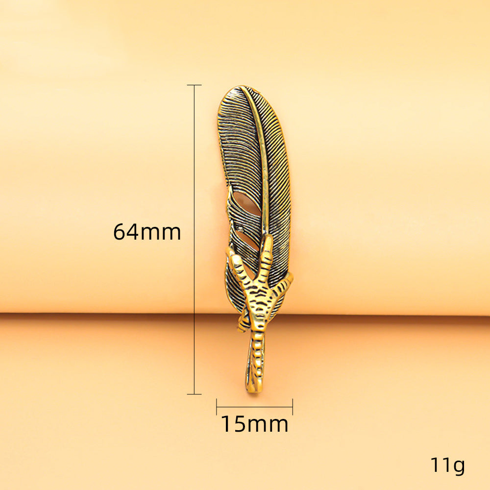 1PCS Vintage Brass Eagle Claw Feather Pendant, Retro Bird Talon Leaf Charm, Antique Brass Jewelry Making Supplies, Keychain Pendant