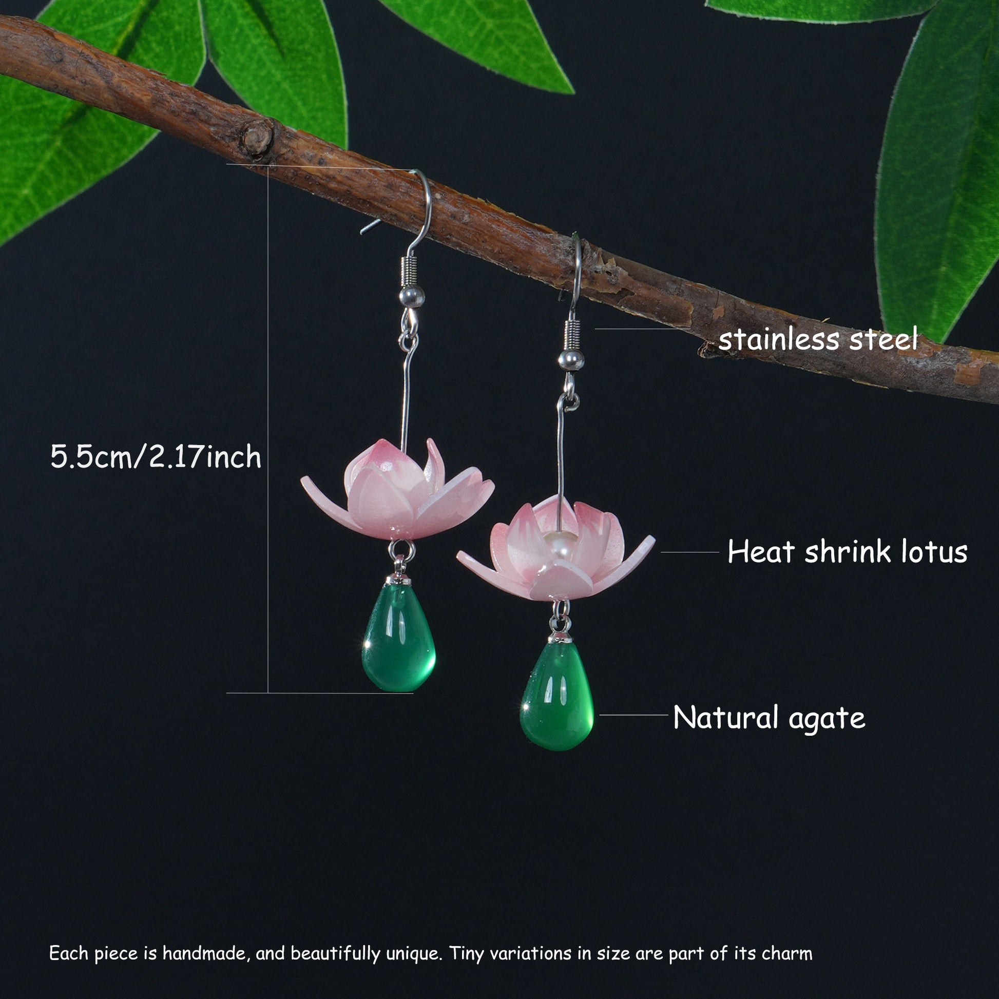 - 🌸 Unique Handmade Design – Beautifully handcrafted lotus flower earrings with a delicate pink bloom and vibrant green agate teardrop, inspired by nature and inner peace.