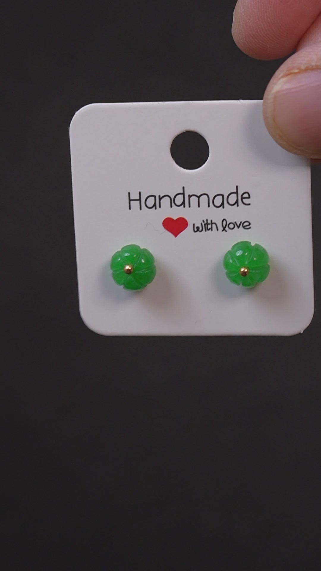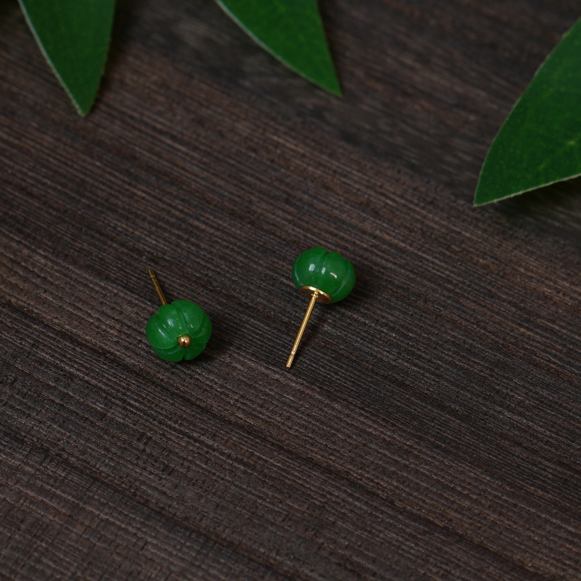 Handmade Green Jade Pumpkin Stud Earrings | Cute Autumn Jewelry for Women | Natural Stone Minimalist Earrings