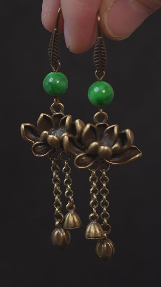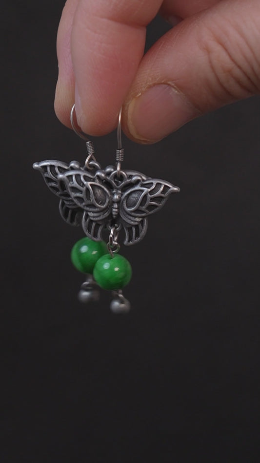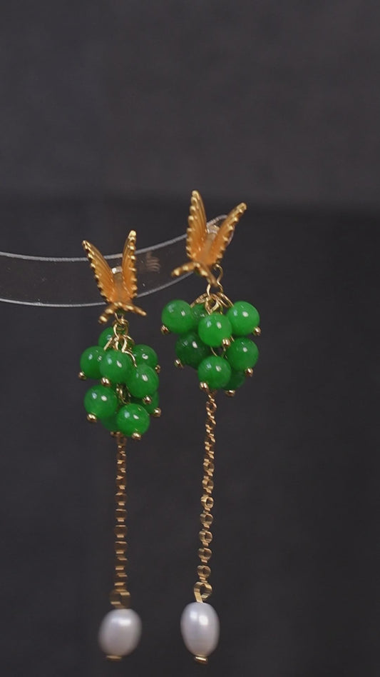 Vintage Gold Flying Bird Green jade beads Earrings, Two Ways to Wear, Gift for her