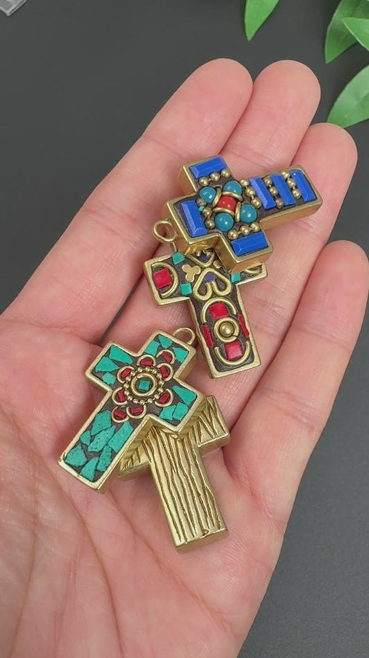 Nepal Ethnic Style Cross Pendant, Handmade Tribal Jewelry, Boho Spiritual Necklace Charm