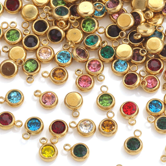 20PCS 6mm Stainless Steel Birthstone Pendant - 12 Zodiac Crystal Lucky Stones, Titanium Steel DIY Jewelry Making Supplies, Mixed Color