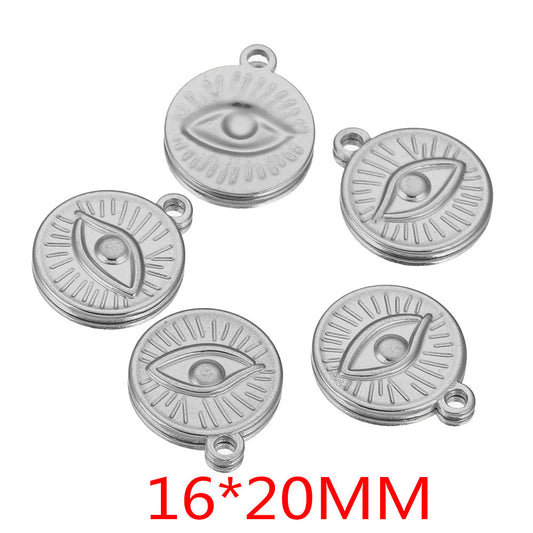 Stainless Steel Vintage Round Blue Evil Eye Pendants, Enameled DIY Charms for Bracelets/Necklaces/Keychains, Jewelry Making Accessories