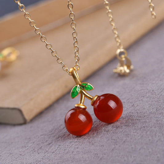 Natural Agate Cherry Pendant, Red Agate Fruit Charm for DIY Necklace, Bracelet, Earring Jewelry Making Supplies