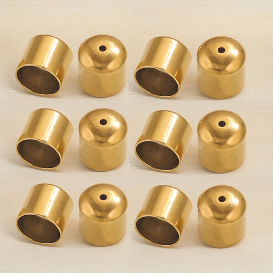 10PCS Stainless Steel End Caps, Round Cord Ends with Hole, Titanium Steel Jewelry Findings, Waterproof DIY Jewelry Making Supplies