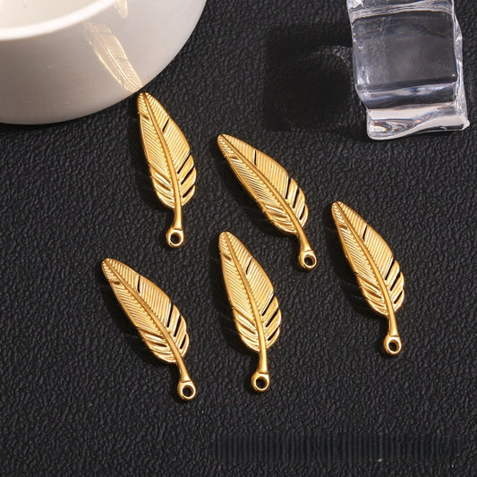 2PCS Delicate Stainless Steel Feather Pendant - Polished Finish | Hypoallergenic Boho Charm