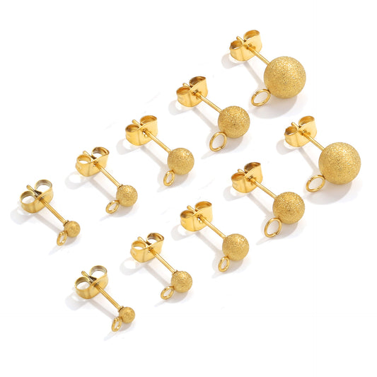 5 Pairs Titanium Steel Dangle Stud Earrings - Stainless Steel Matte Gold - toned Beaded Welded Needles, DIY Handmade Jewelry Supplies