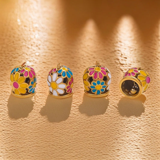 Stainless Steel Enamel Bell Pendants, DIY Jewelry Accessories for Bracelets/Anklets, Ideal for Leather Cord & Red Cord Connections