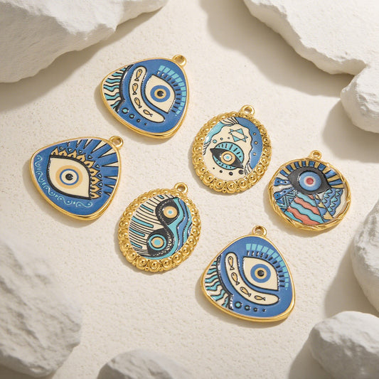 Stainless Steel Irregular Blue Heart Pendants, Enameled Flower & Eye Printed Charms, DIY Jewelry Accessories for Necklaces/Earrings