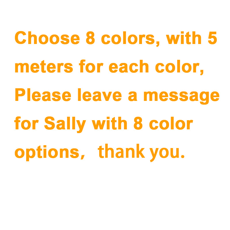 Choose 8 colors, with 5 meters for each color, Please leave a message for Sally with 8 color options,thank you.
