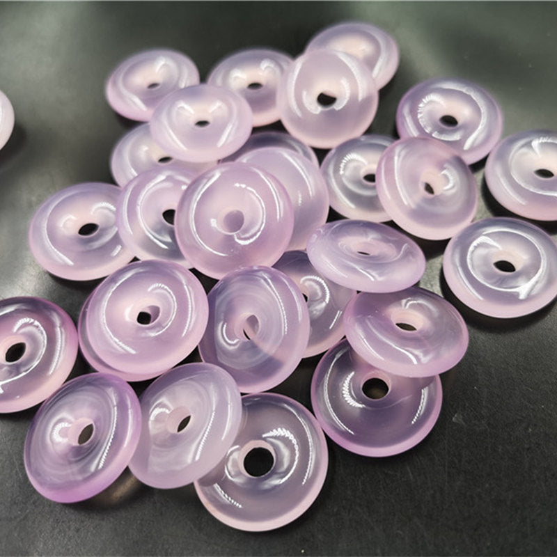 25mm Pink Agate Donut Pendant, Lucky Peace Coin Charm, Natural Stone DIY Jewelry, Handmade Bracelet Necklace Pendant