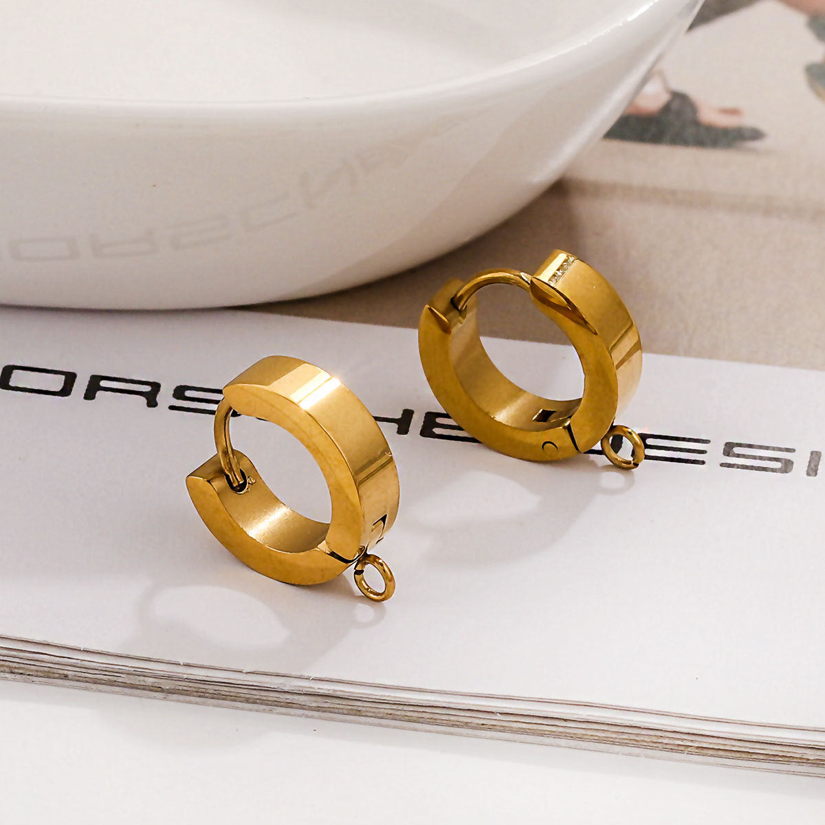 5 Pairs Stainless Steel Polished Circular Earrings - Retro & Lightweight, DIY Ear Clasps - Titanium Steel Colorfast Ear Studs & Hoops