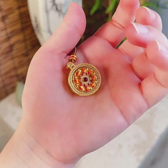 Gold Sand Spinning Lotus Eight Treasures Compass Pendant, Rotatable Buddhist Amulet Jewelry