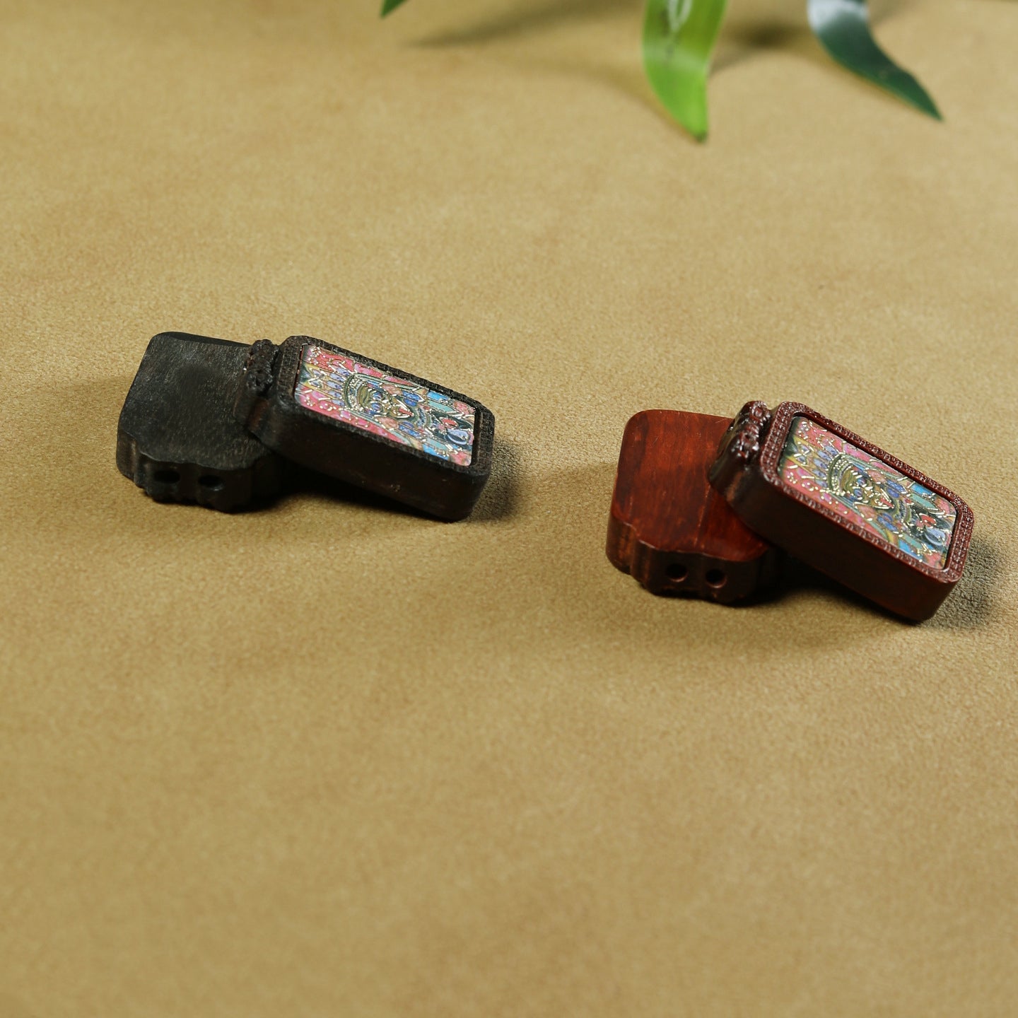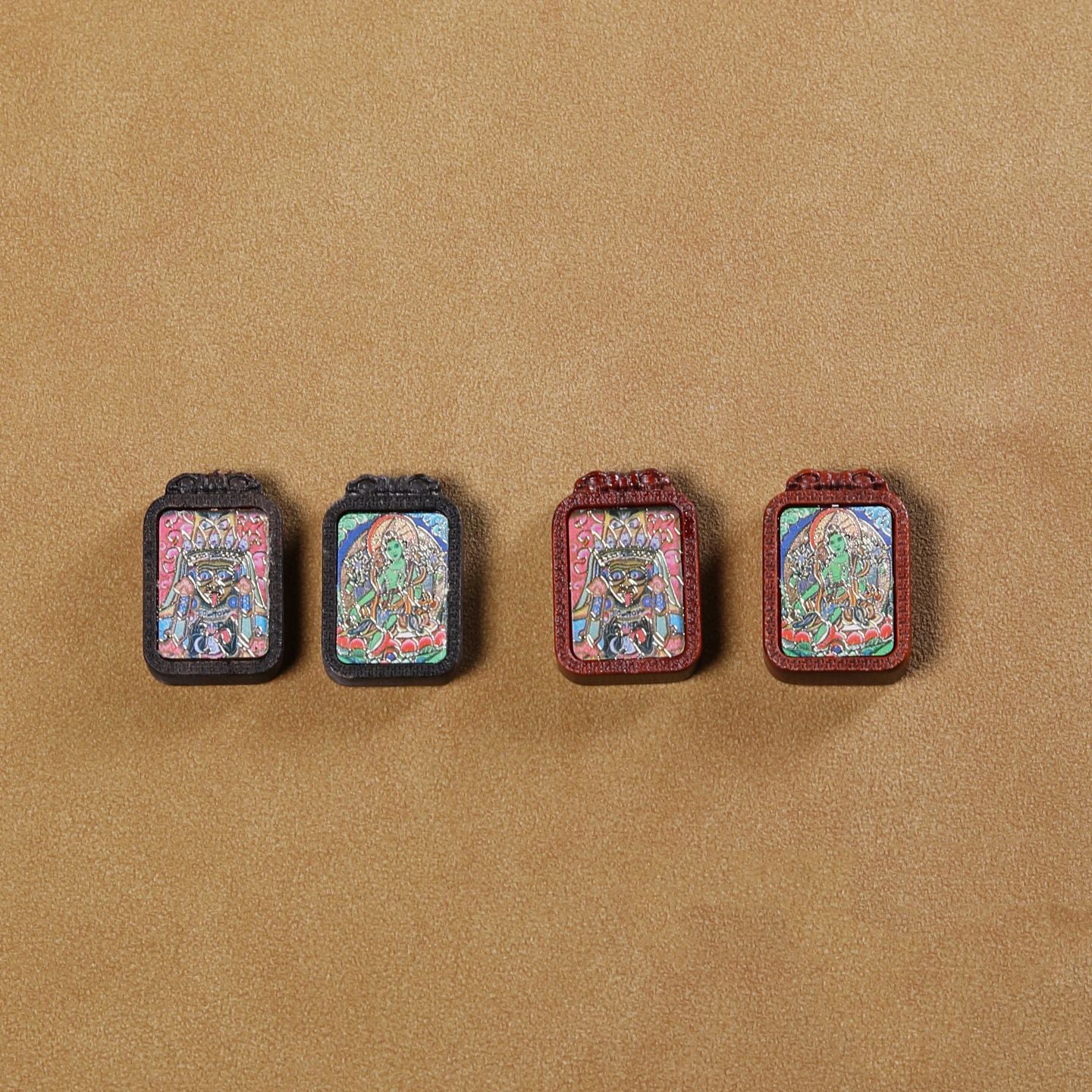 Handmade Agarwood Painted Green Tara Dzi Ram Pendant Accessories - DIY Jewelry Making Supplies for Spiritual Craft