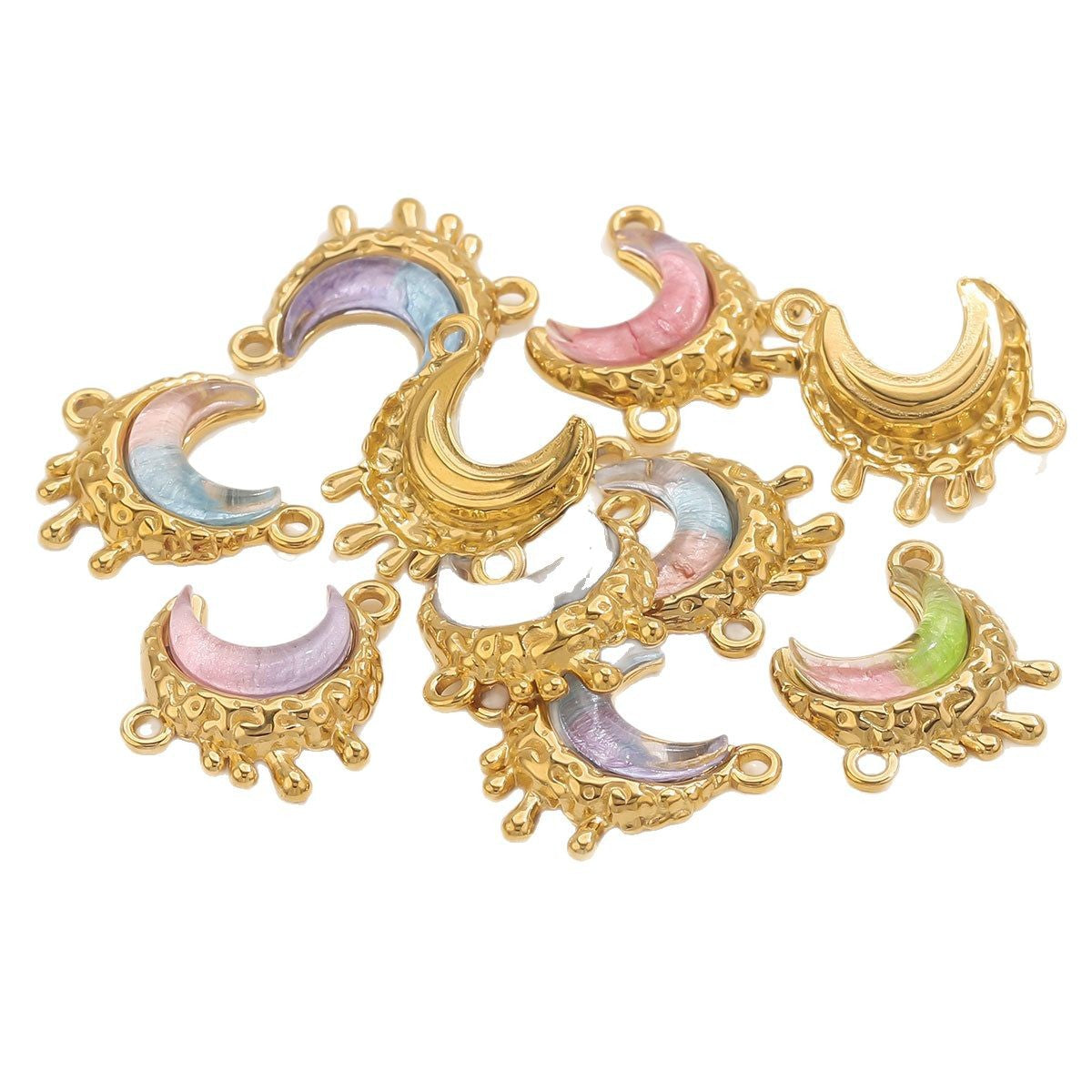 Stainless Steel Starry Sky Moon Pendant | Dreamy Colorful Double-Hole Charm, DIY Accessory for Necklace Making & Jewelry Craft
